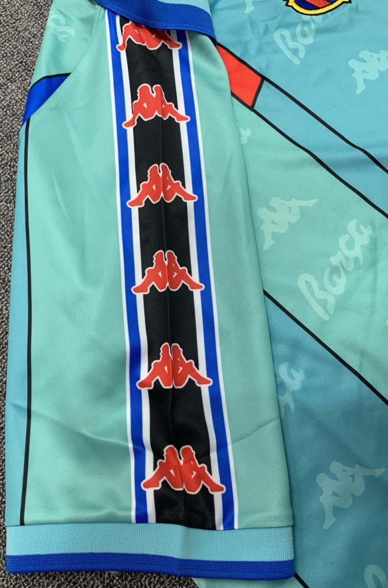 The shirt’s design includes the Kappa logo, embroidered alongside the Barcelona crest, creating a timeless look that resonates with fans of the 90s. The 1996/97 season is remembered for Ronaldo's incredible goal-scoring feats and the team’s success in winning the Copa del Rey and UEFA Cup Winners' Cup. Crafted from soft, breathable fabric, this jersey is perfect for collectors or fans wanting to relive one of the most exciting seasons in Barcelona's history.