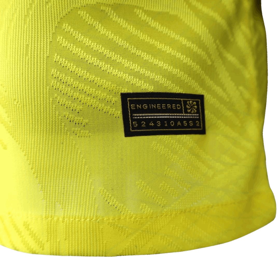 Introducing the 23/24 Al Nassr Home Kit - Player Version. Unveiling the Latest in Al Nassr`s Kit Collection for 2023/24 Season. Experience the epitome of style and performance with the all-new 23/24 Al Nassr Home Kit - Player Version. Crafted to perfection, this kit exemplifies the spirit of Al Nassr Football Club, embodying their heritage and commitment to excellence.