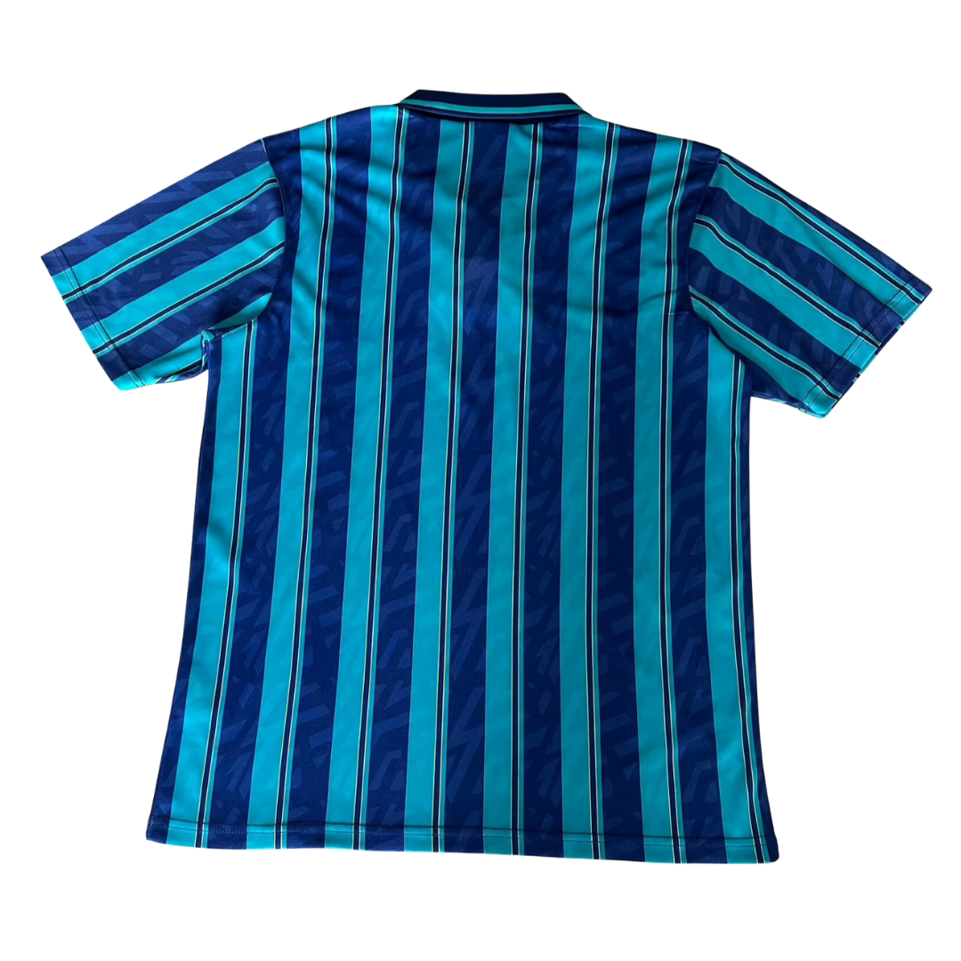 The Ajax Away Shirt 1993-94 is a standout kit from a crucial era in the club’s history. Designed by Umbro, this away jersey was worn during a season that laid the groundwork for Ajax’s upcoming European dominance. With its bold blue and teal vertical stripes and the iconic ABN AMRO sponsor, this shirt is a must-have for vintage football shirt collectors.