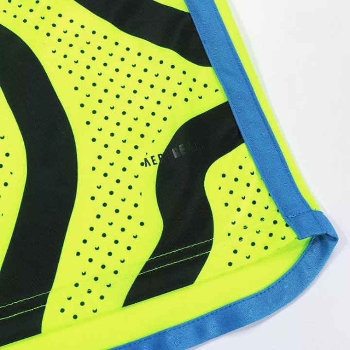 The Arsenal away jersey 2023/24 is a beloved symbol of the game. It's the outfit that represents Arsenal Football Club, a historic English team. The vivid green hue makes it easily recognizable, showing off the team's spirit. The badge in the center features a powerful cannon, symbolizing Arsenal's strength and success. It's a reminder of the club's history, filled with championship wins. Whether you're a player or a fan, wearing an Arsenal jersey is wearing a piece of history and showing your love for the game. The Arsenal jersey is perfect for both players and fans. It's made from comfy, moisture-wicking fabric that keeps you dry during intense matches and fits snugly. Look out for the sponsor's logo on the chest, showing Arsenal's global appeal and ability to attract top partners. But this jersey is more than just clothing. Whether you're a star player scoring unforgettable goals or a devoted fan in the stands, it symbolizes loyalty, shared dreams, and a deep love for the game. When you wear an Arsenal jersey, you're not just putting on a shirt; you're joining a worldwide community of passionate fans who share your love for the team.