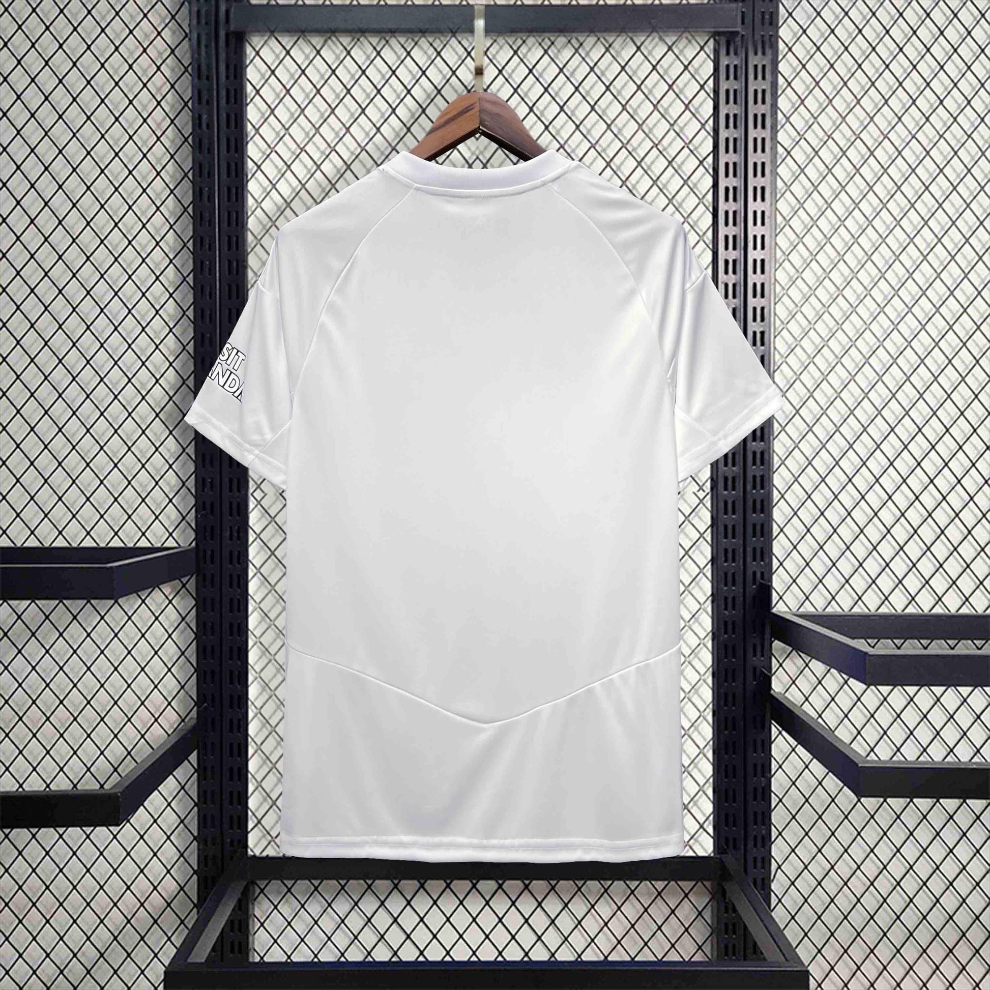 The Arsenal White Jersey 2024/2025 edition captures the perfect blend of simplicity and sophistication, celebrating the club's rich heritage with a modern twist. The all-white base is accentuated with subtle silver detailing, creating an elegant and contemporary look that stands out. This jersey symbolizes purity and determination, mirroring the club's relentless pursuit of excellence both on and off the pitch. The lightweight, breathable fabric ensures optimal comfort, making it perfect for match days, training sessions, or casual wear.
